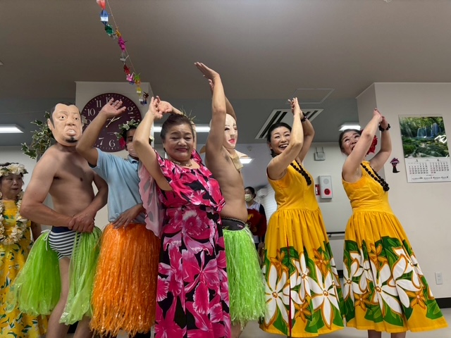勿論フラダンスチームの踊りも大盛況で、スタッフとコラボレーション(笑)