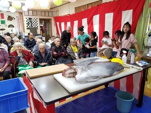 魚友の鈴木社長に来て頂き、解体ショーをやって頂いたんですよ(^^)/(^^)/(^^)/